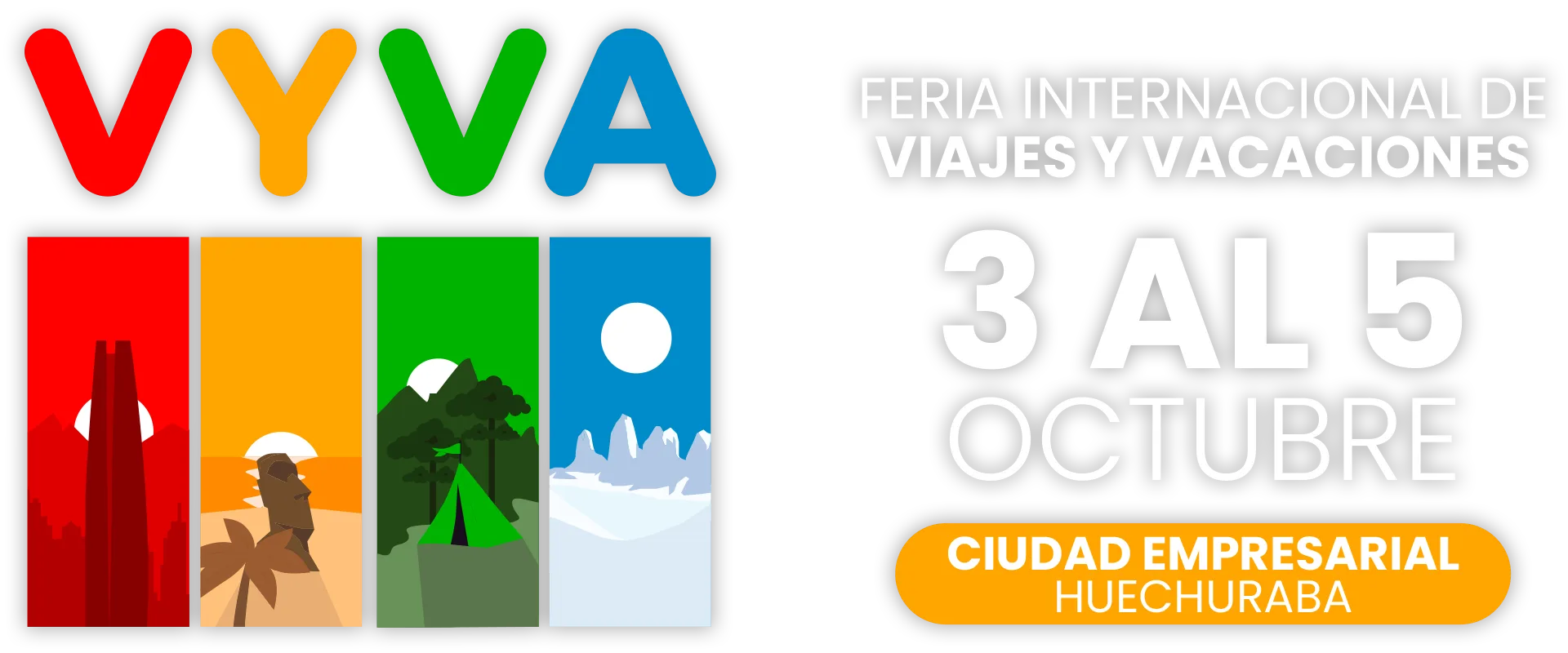 La feria de turismo VYVA Chile 2025 se está preparando para su realización del 3 al 5 de octubre de 2025 en el Parque Ciudad Empresarial de Huechuraba, consolidando un esfuerzo público-privado para reactivar el turismo post-pandemia. La feria, que no se realizaba hace años, será una plataforma para el turismo nacional e internacional, con un enfoque en la aventura, gastronomía y negocios, y contará con eventos paralelos como Mundo Outdoor y el Santiago Grill Festival.