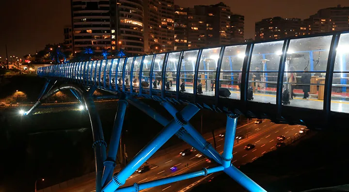 Con 112 metros de largo, 8 metros de ancho y construido a más de 60 metros de altura, esta moderna infraestructura no solo facilita el tránsito peatonal, sino que también se convierte en un ícono arquitectónico y turístico de Lima.